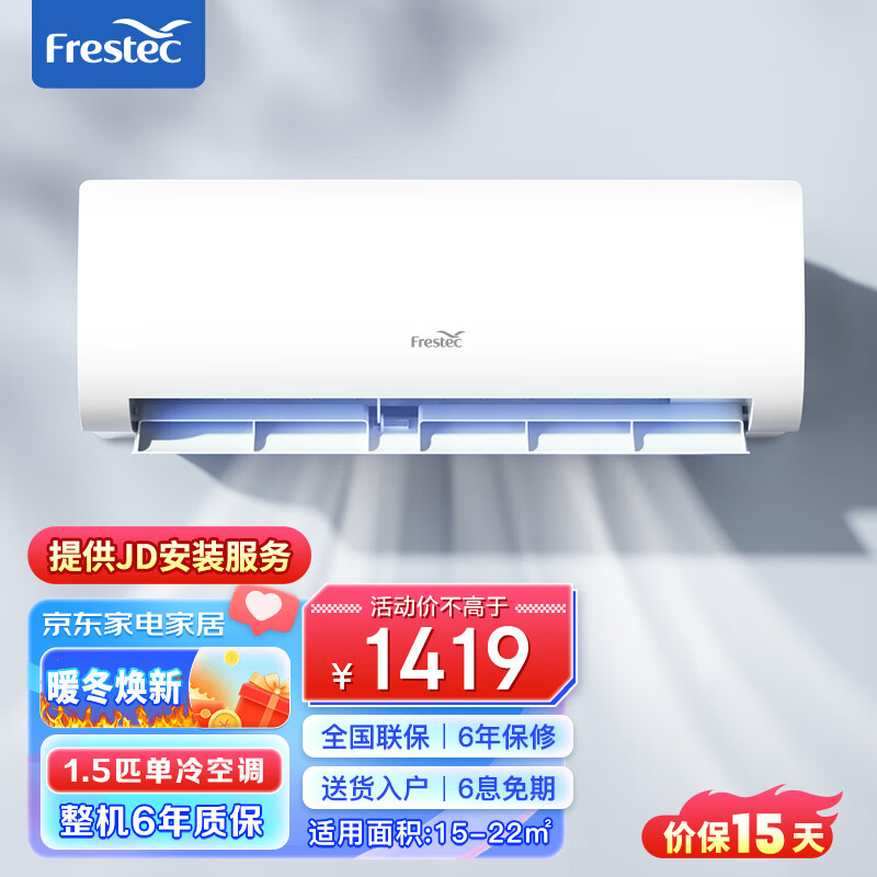 新飞(Frestec)空调 冷暖 新能效 节能省电 快速制冷 自清洁 壁挂挂机 省电挂机能效空调 1.5匹单冷【包基础安装】价格:1419.00元!