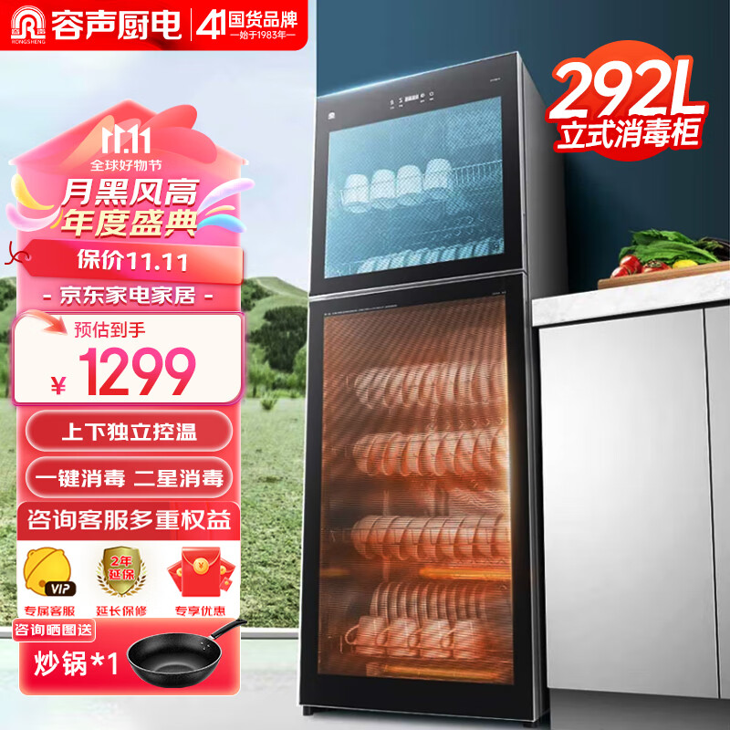容声(RONGSHENG)消毒柜家用 立式消毒碗柜 大容量 商用消毒柜 双门台式餐具厨房碗筷消毒柜380-RQ230(A)价格:1299.00元!