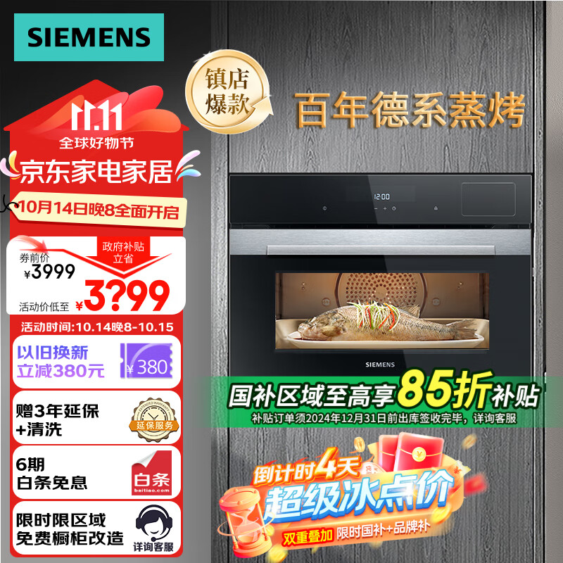 西门子(SIEMENS)嵌入式蒸烤箱一体机烤箱蒸箱 智能家用蒸烤一体机 45L 大容量CS389ABS0W高45.5CM价格:7999.00元!