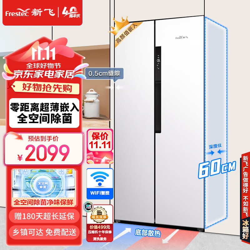 新飞(Frestec)60cm超薄嵌入450L对开门一级变频底部散热全空间除菌电冰箱政府补贴BCD-450WKQ9AT白价格:2099.00元!