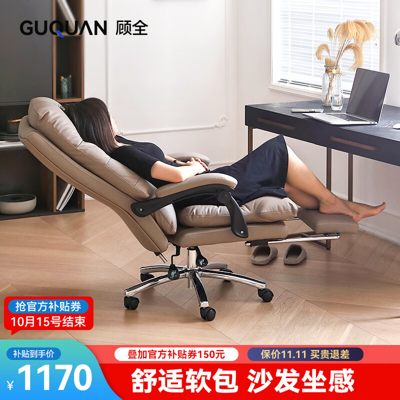 顾全老板椅可躺电脑椅 办公椅午休椅 牛皮家用人体工学大班椅C533咖皮价格:1950.00元!
