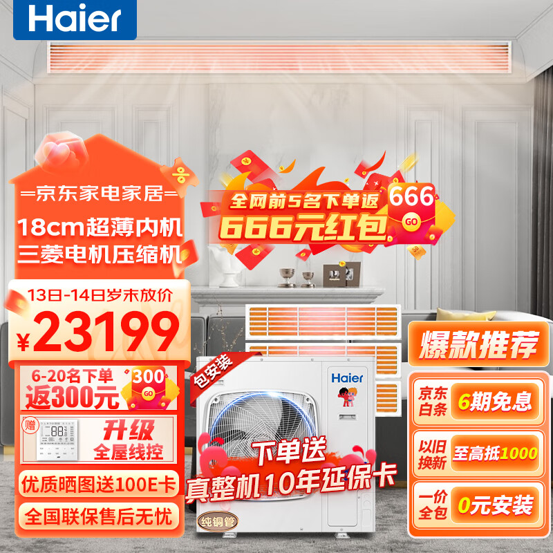 海尔(Haier)中央空调一拖三风管机5匹小多联一级能效全直流变频嵌入式智尊+ RFC125MXSAVB(F)价格:22599.00元!