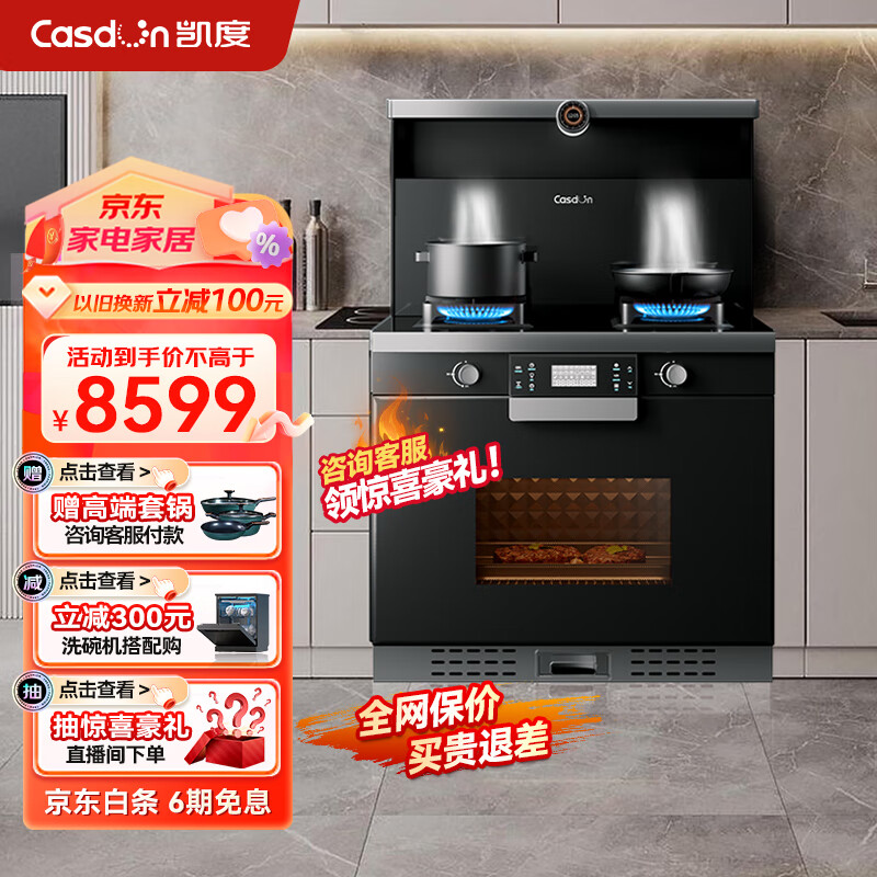 凯度(CASDON)集成灶蒸烤一体集成灶一体灶 蒸箱烤箱一体式 抽油烟机套装 JJZT-B2S8-G1E 天然气价格:8599.00元!
