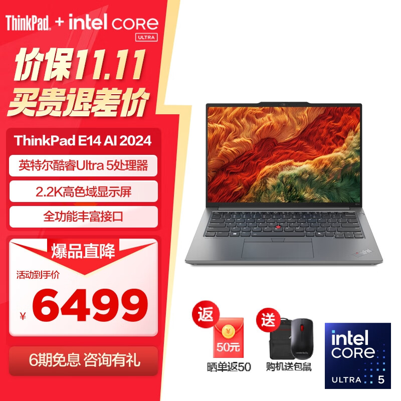 ThinkPad 联想 E14 AI 2024全新英特尔酷睿Ultra处理器可选 商务办公便携笔记本电脑 14英寸轻薄本 Ultra 5-125H 32G 1TB商务黑价格:6999.00元!