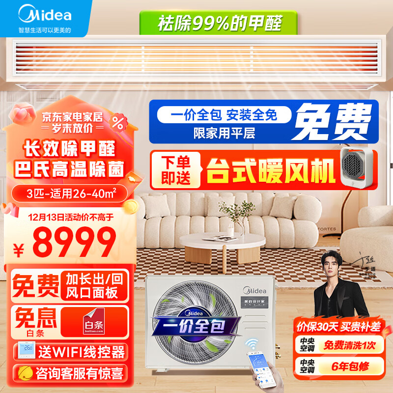 美的(Midea)中央空调风管机一拖一3匹全直流变频一级能效设计家KFR-72T2W/B3DN1-SJ(1)一价全包价格:9099.00元!