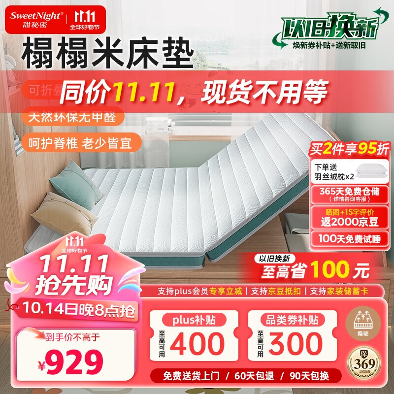 Sweetnight榻榻米床垫天然椰棕床垫6cm床垫子 可定制 甜秘密丹左B款1.2x2米价格:929.00元!