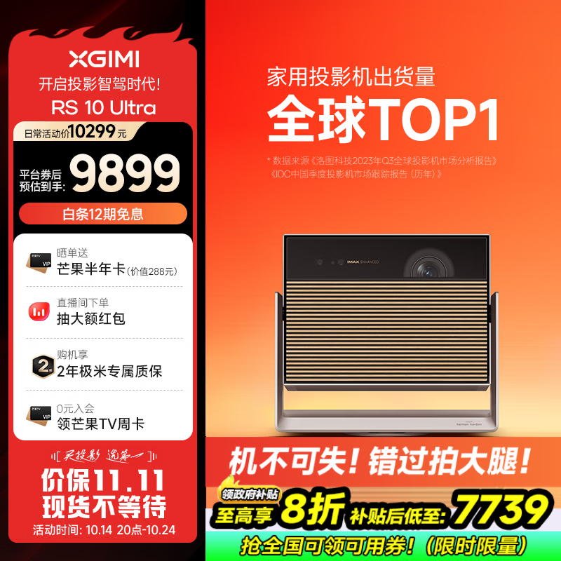极米RS 10 Ultra 4K IMAX 认证智能激光投影 家庭电视影院(三色激光技术 3200 CVIA 全自动云台 )价格:10299.00元!