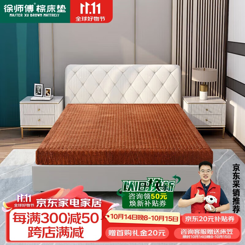 徐师傅全山棕床垫硬棕垫手工线缝单双人榻榻米床垫定制2*2.2米价格:5372.00元!