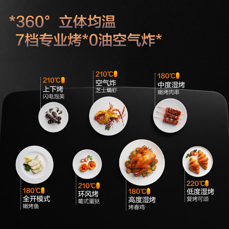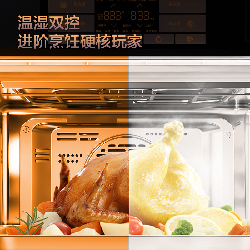 1、使用后非常满意。这款烤箱外观时尚,内部空间充足,可以容纳整只鸡或多个小蛋糕。,它的蒸汽功能非常强大,能够快速产生大量蒸汽,使食物保持湿润,更适合烤制蔬菜或鱼类。此外,它的温度控制系统非常准确,使我能够轻松地烤出完美的蛋糕和面包。总之,这款蒸烤箱是—款非常实用、功能强大的家电,值得推荐!