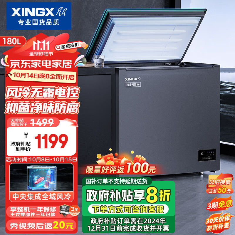 星星(XINGX)180升家用商用风冷无霜茶叶保鲜冰柜 冷藏冷冻转换卧式冷柜 电脑控温节能顶开门BD/BC-180WKA国补价格:1498.00元!