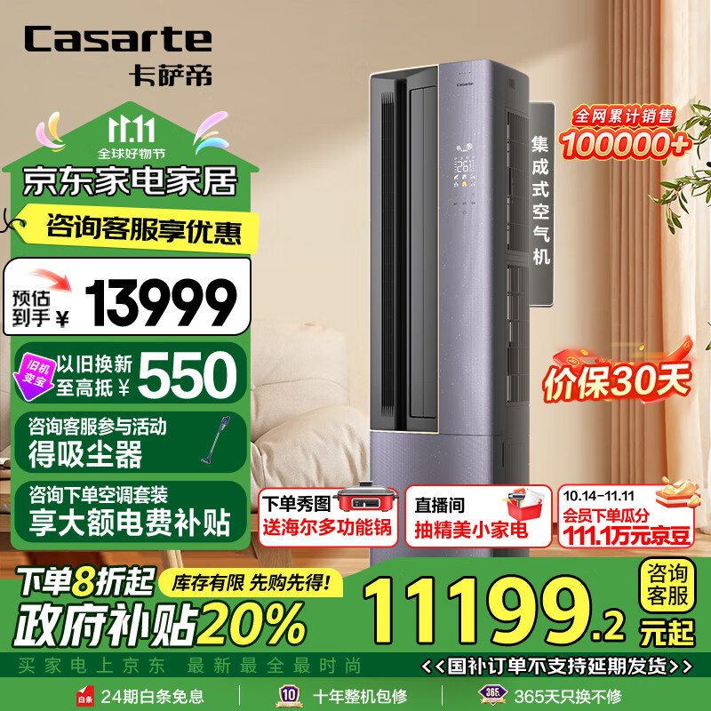 卡萨帝(Casarte)3匹 星云 水氧洗空气技术 复合软风 空调柜机一级能效变频CAP7216BAA(81)VU1政府补贴以旧换新价格:13999.00元!