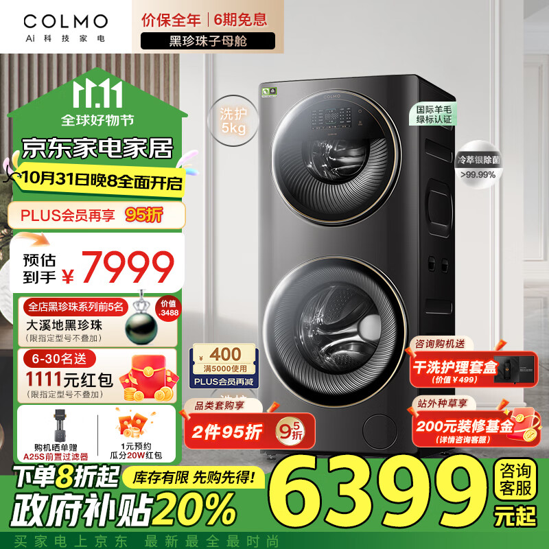 COLMO黑珍珠子母舱GG13E 母婴分区洗衣机滚筒全自动 以旧换新13KG大容量智能投放冷萃银除菌价格:7999.00元!