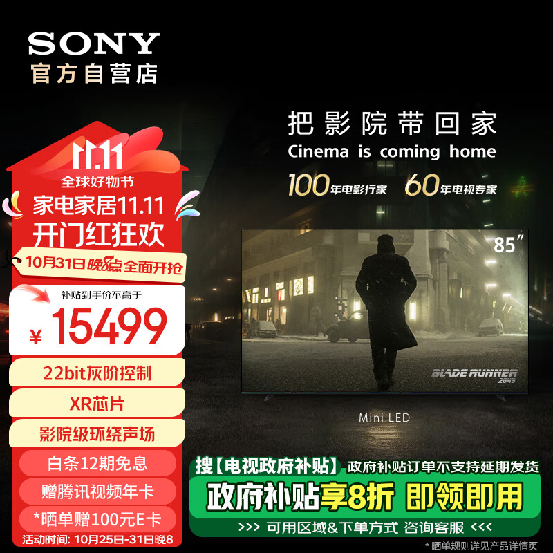 索尼(SONY)85英寸 索尼电视7系 MiniLED 电影感光影/原彩 22bit灰阶控制 XR芯片 85XR70 一级能效 以旧换新价格:17499.00元!