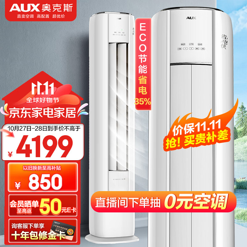 奥克斯(AUX)空调柜机3匹 新能效立式客厅 变频冷暖家用 ECO节能省电侠 KFR-72LW/BpR3GQS1(B3)大风量价格:4199.00元!