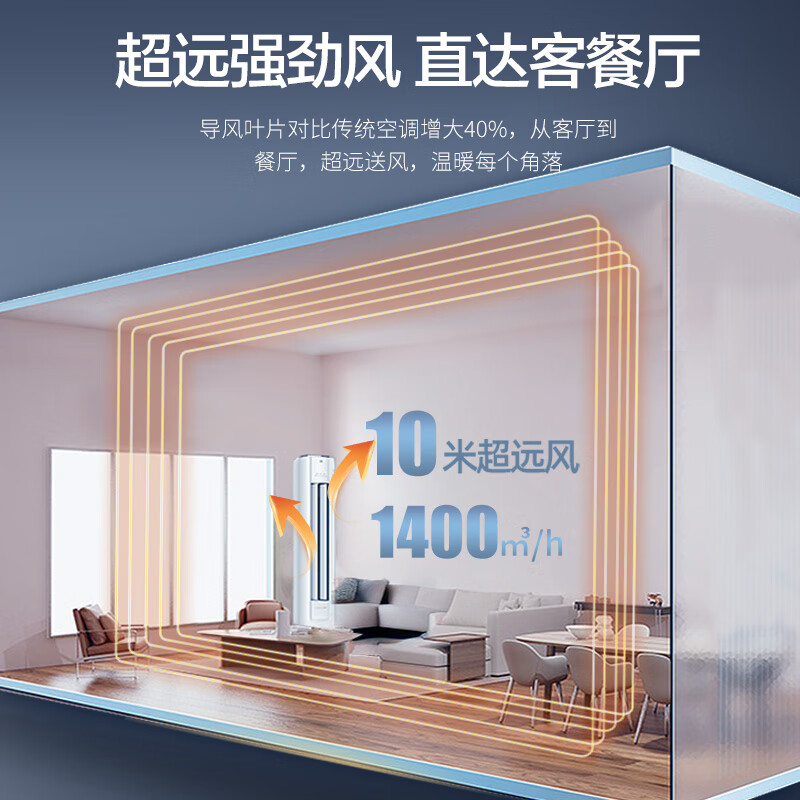 4、立式空调放在客厅一点都不占用位置,这款空调颜值也很高,很家里装修风格很搭配。空调很方便好用,还可以与小爱音箱联动进行语音控制,是个惊喜!