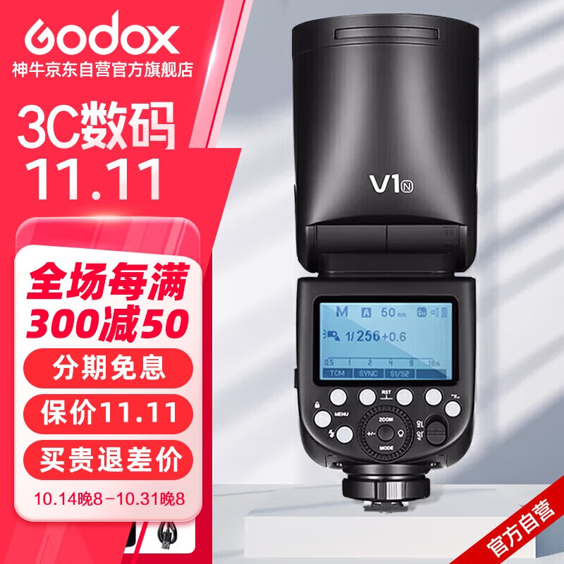 神牛V1闪光灯单反相机外拍机顶灯锂电池高速TTL摄影热靴灯便携口袋灯(尼康版)价格:1380.00元!