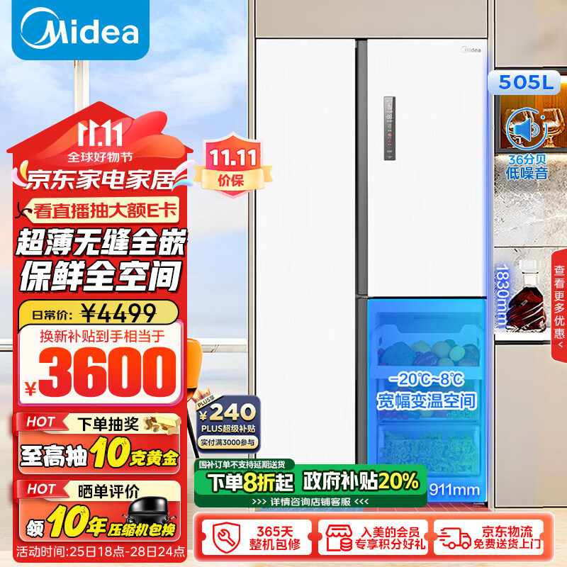 美的(Midea)无缝全嵌系列对开双开门超薄可嵌入国补家用智能电冰箱一级双变频无霜MR-530WUKPZE以旧换新补贴价格:4499.00元!