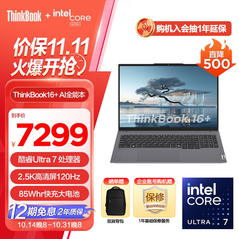 ThinkPad联想ThinkBook16+2024 AI全能本 全新英特尔酷睿Ultra标压处理器 16英寸轻薄学生办公笔记本电脑 Ultra7 155H 32G 1T 0BCD价格:7299.00元!