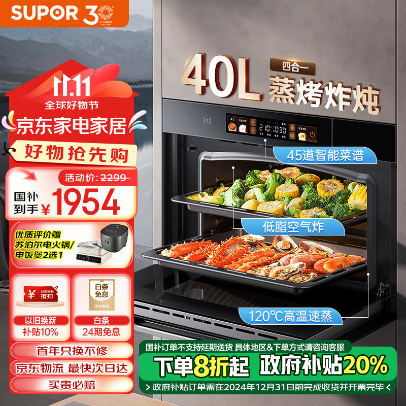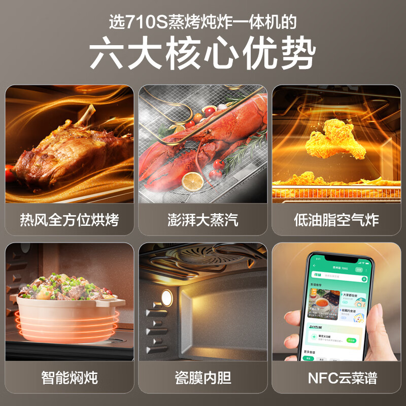 苏泊尔嵌入式蒸烤箱一体机 家用蒸烤箱 速热智能控制 烤箱电蒸箱多功能大容量40L 710S蒸烤价格:2299.00元!