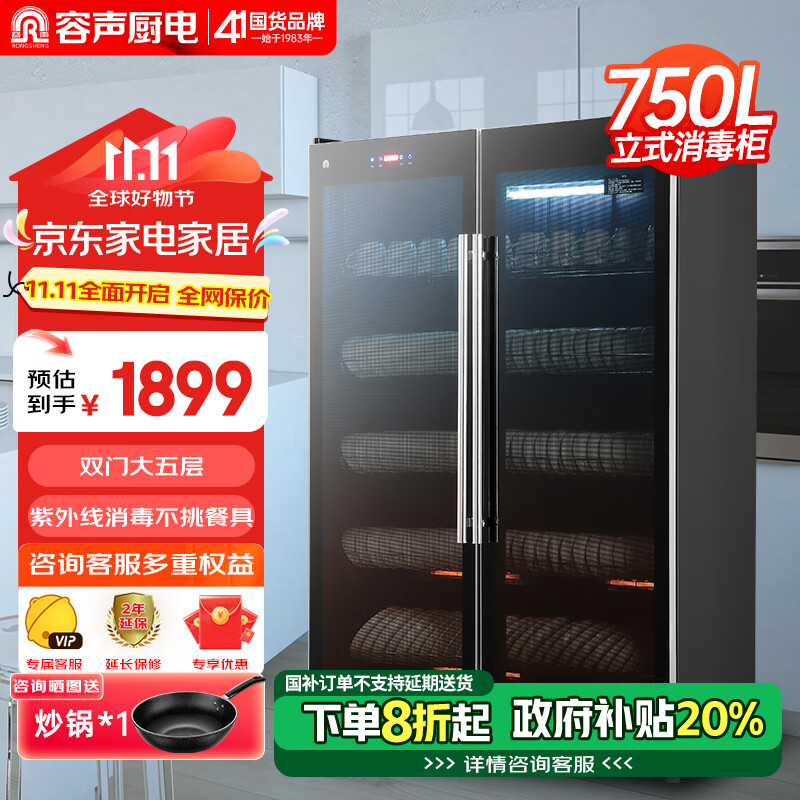 容声(RONGSHENG)消毒柜家用 立式 消毒碗柜 餐饮 双开门 家商两用 厨房商用 大容量750L保洁柜900-RD307价格:1899.00元!