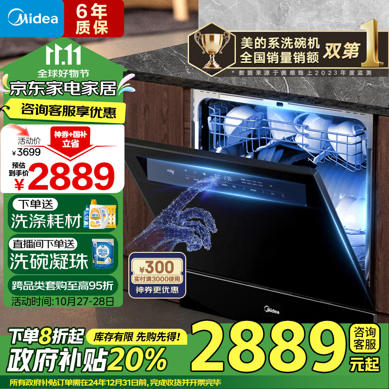 美的(Midea)10套 嵌入式台式洗碗机V8 变频节能 三星消毒 热风烘干 倾斜大屏免弯腰 家用智能 京东小家价格:3699.00元!