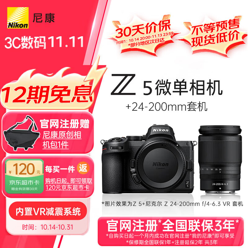 尼康(Nikon)Z5全画幅微单相机 微单套机 ( Z 24-200mm f/4-6.3 VR 微单镜头)Vlog相机价格:12799.00元!