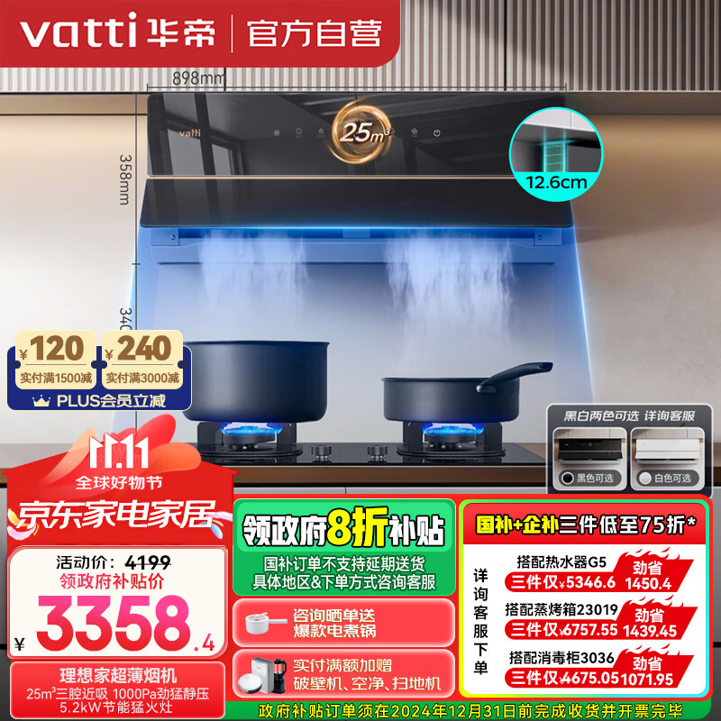 华帝(VATTI)【理想家】抽油烟机官方超薄近吸X6家用侧吸25风量变频大吸力燃气灶烟灶套装一级能效i11210天然气价格:3999.00元!