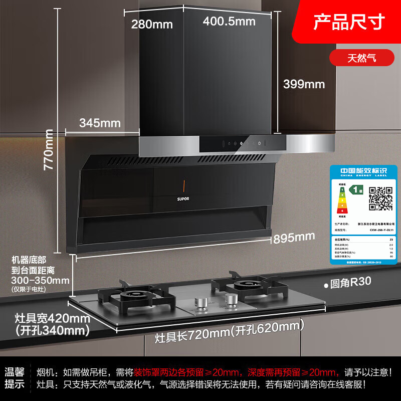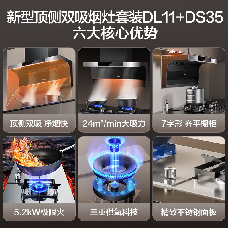 苏泊尔(SUPOR)抽油烟机 顶侧双吸7字型烟灶套装24立方挥手免拆洗家用烟机燃气灶具套装DL11+DS35天然气价格:1996.00元!