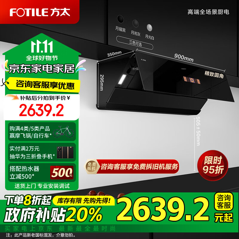 2、双十一的速度简直惊人,下单第二天就配送了,非常喜欢新月f1的外形,看起来很精致高级,看上烟灶联动才买的,很方便。