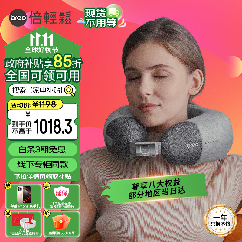 倍轻松(breo)iNeck air2颈部按摩器 颈椎按摩按摩仪 智能充气按摩枕颈椎按摩器 送父母男女友生日节日礼物价格:1198.00元!