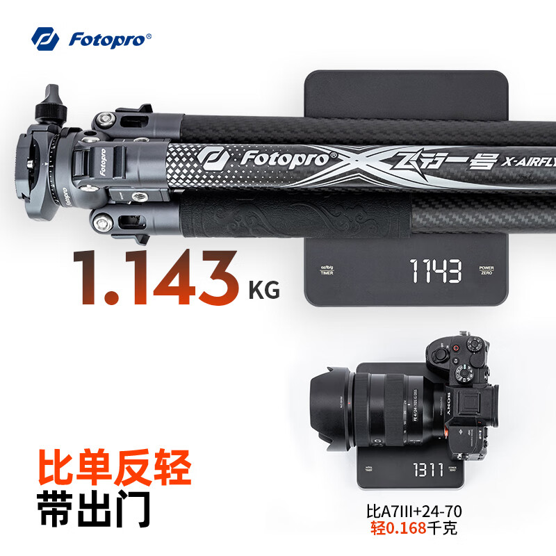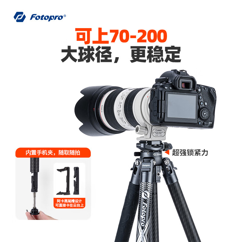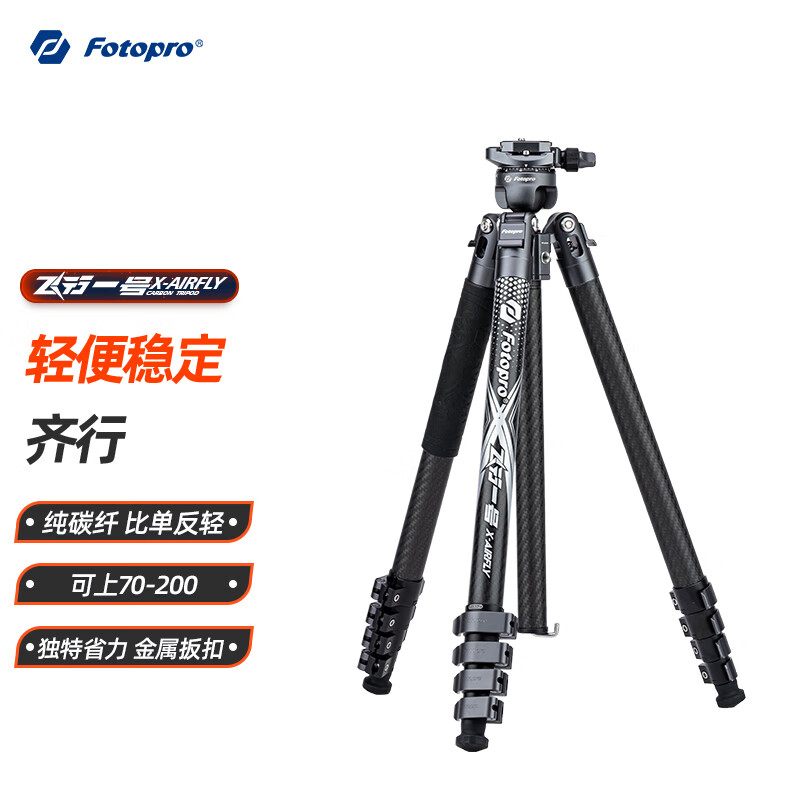 富图宝(Fotopro)飞行一号 球形云台相机微单摄影摄像无中轴扳扣碳纤维三脚架 原碳灰 含手机夹价格:1117.00元!