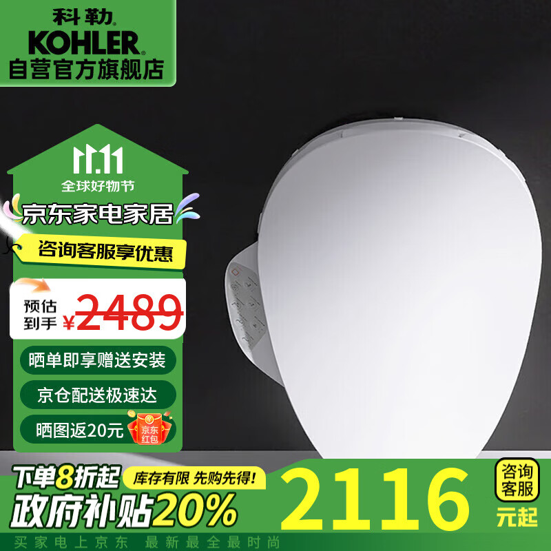 4、由于买的科勒小号的马桶,一直在看智能盖板,松下,TOTO都看过,就怕尺寸不合适,趁双十二价格优惠,还是选了科勒的盖板,京东隔天送到,物流一直跟快。自己动手安装也很简单,与科勒马桶完美匹配。坐便器加热很快,冬天再也不怕冷了。