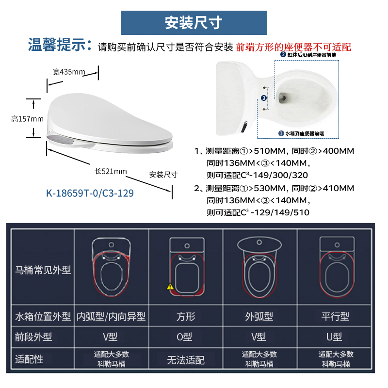 2、大小尺寸及高度都适宜,和家里的科勒马桶适配度很高,安装也很到位,用下来除了暖风略微弱一点,整体感觉还不错~