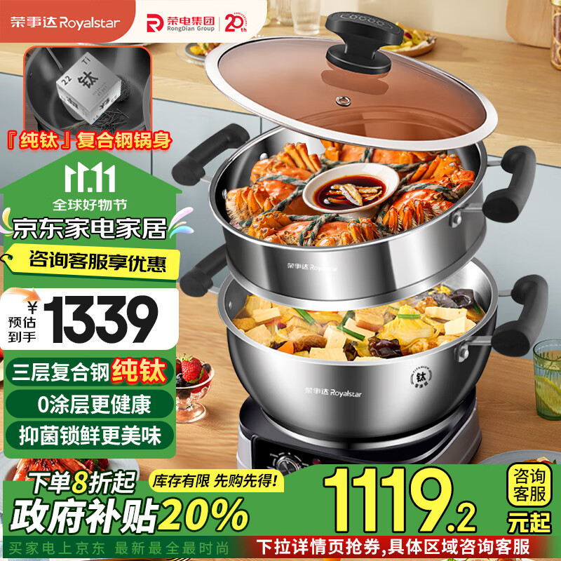 荣事达(Royalstar)电炒锅 多功能电炒锅【纯钛内胆】锅多用途锅山东锅可定时家用电火锅电蒸锅RDG-ZH32GB6S-T价格:1399.00元!
