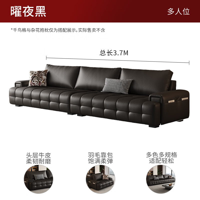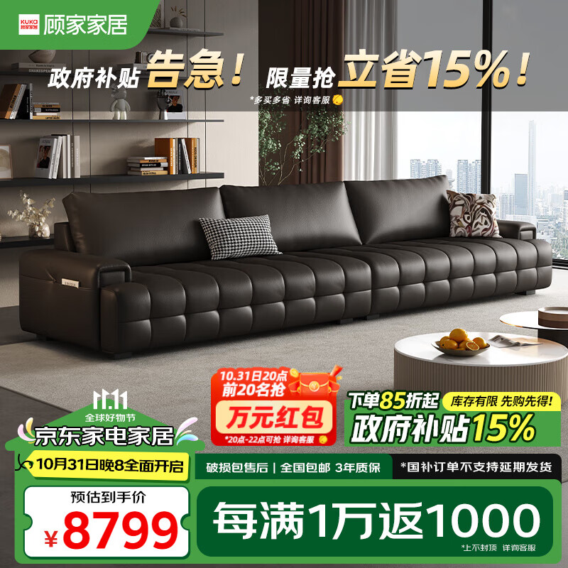 顾家家居(KUKA)劳伦斯沙发头层牛皮沙发客厅大户型别墅1219曜夜黑3.7M多人位价格:8799.00元!