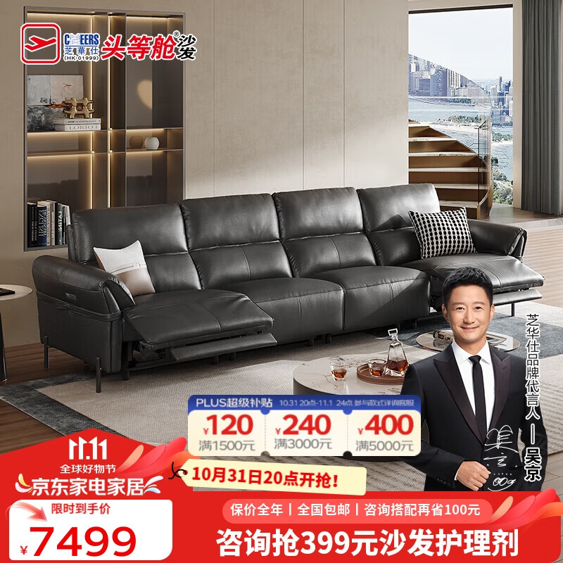 芝华仕(CHEERS)头等舱绅士皮沙发零靠墙意式轻奢电动功能家用客厅50795升级四黑价格:7499.00元!