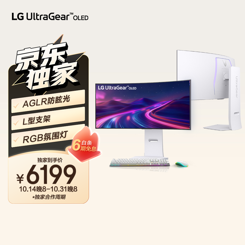 LG 33.9英寸 OLED显示器 240Hz 0.03ms 800R曲面屏 21:9带鱼屏 HDMI2.1 游戏电竞显示器 34GS95QE-W价格:6199.00元!