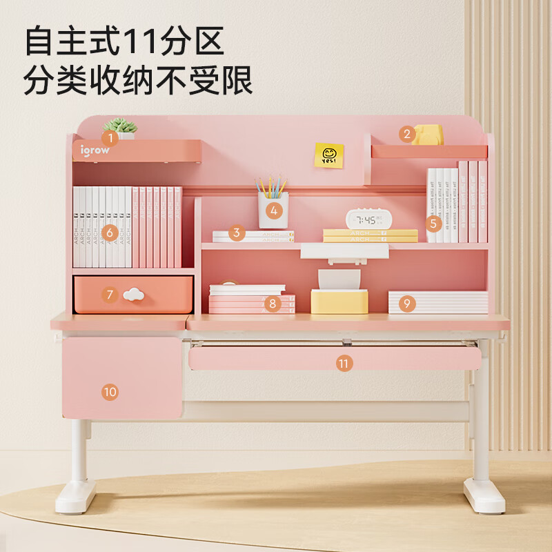 2、功能很强大,自由调节高度,搭配追背椅孩子特别喜欢,还有很多的收纳格和空间,把孩子零零碎碎的东西都能收纳起来,很棒很完美!