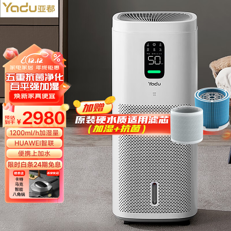 亚都(YADU)无雾加湿器卧室婴儿家用办公室空调房空气加湿器大容量上加水增湿器APP智联SZ1200-TK101(Hi)价格:2680.00元!