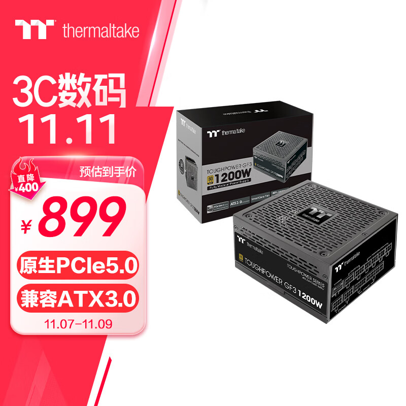 Thermaltake(Tt)额定1200W 钢影Toughpower GF3 电脑电源(原生PCIe5.0/ATX3.0规范/80PLUS金牌/40显卡)价格:899.01元!
