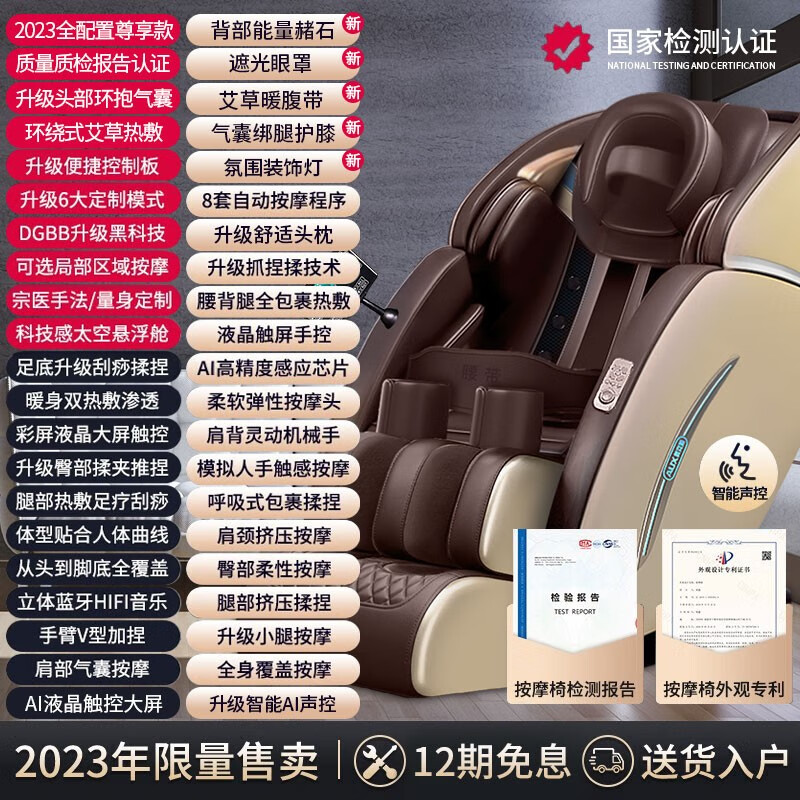 4、按摩椅收到了,很舒服,家人特别喜欢,颜色也很好看,显示屏操作起来也方便,可以语音功能,操作简单,客服态度也很好,物流也很快,包装也严实。