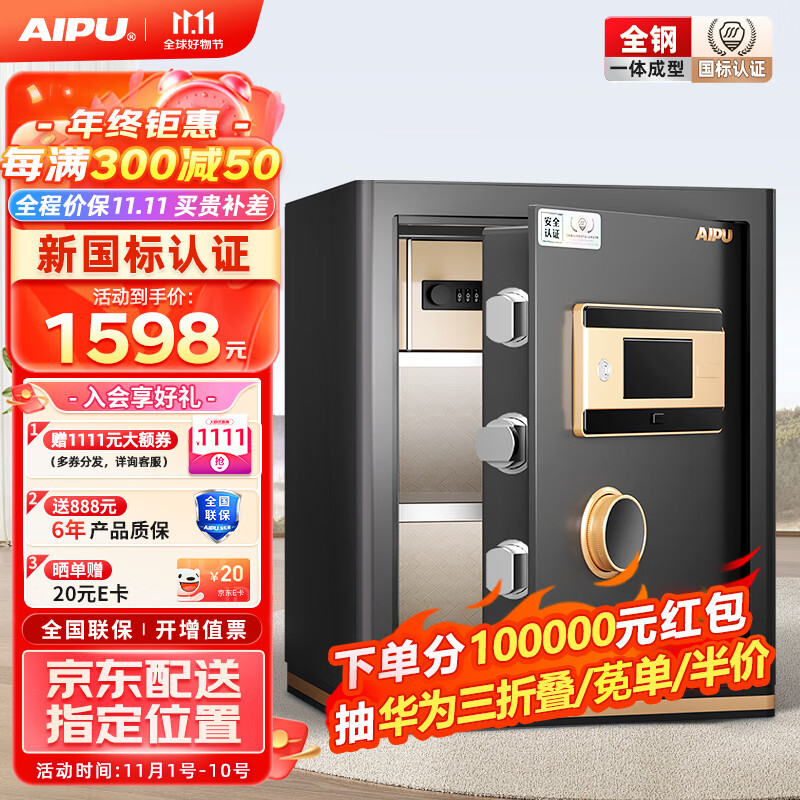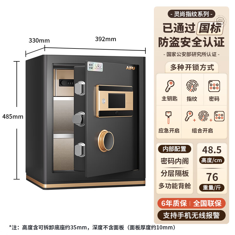 艾谱保险柜家用 保险箱办公指纹密码防盗智能 小型机械全钢新国标认证财务收纳夹万 灵尚高45CM黑价格:1898.00元!