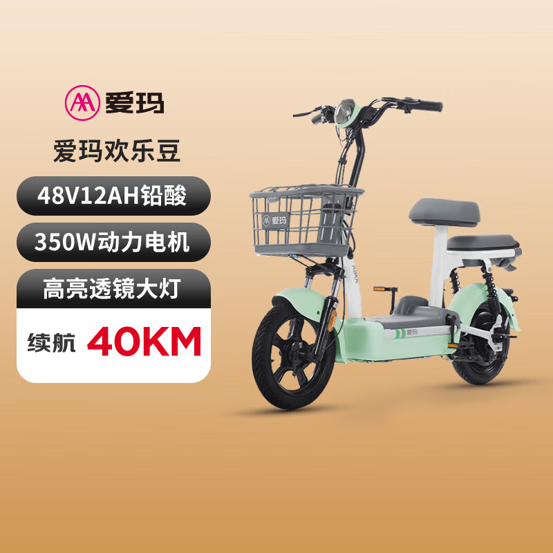 爱玛新国标电动自行车欢乐豆48V12Ah小巧迷你骨架电动车 源彩塔塔绿价格:1599.00元!