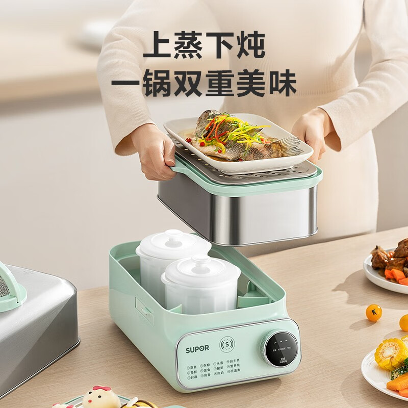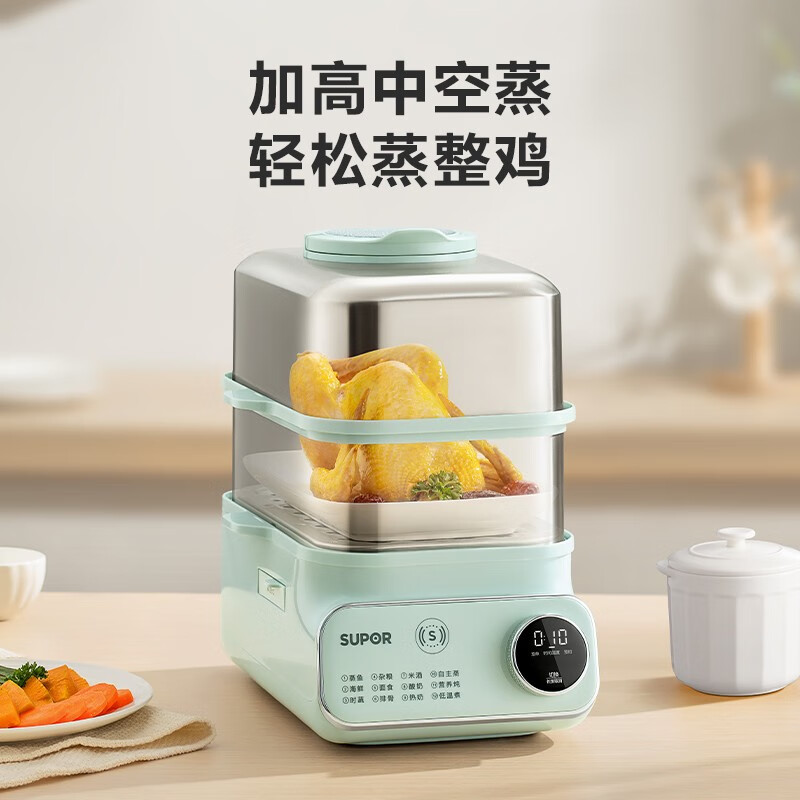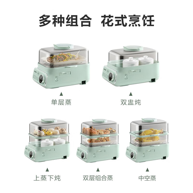 1、苏泊尔(SUPOR)全钢电蒸锅2100W大功率猛火速蒸上蒸下炖多档调温304不锈钢蒸笼智能预约料理锅ZN2030FC833