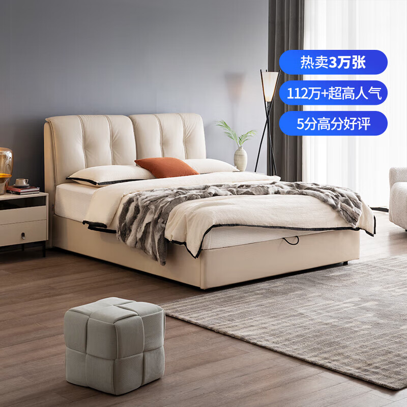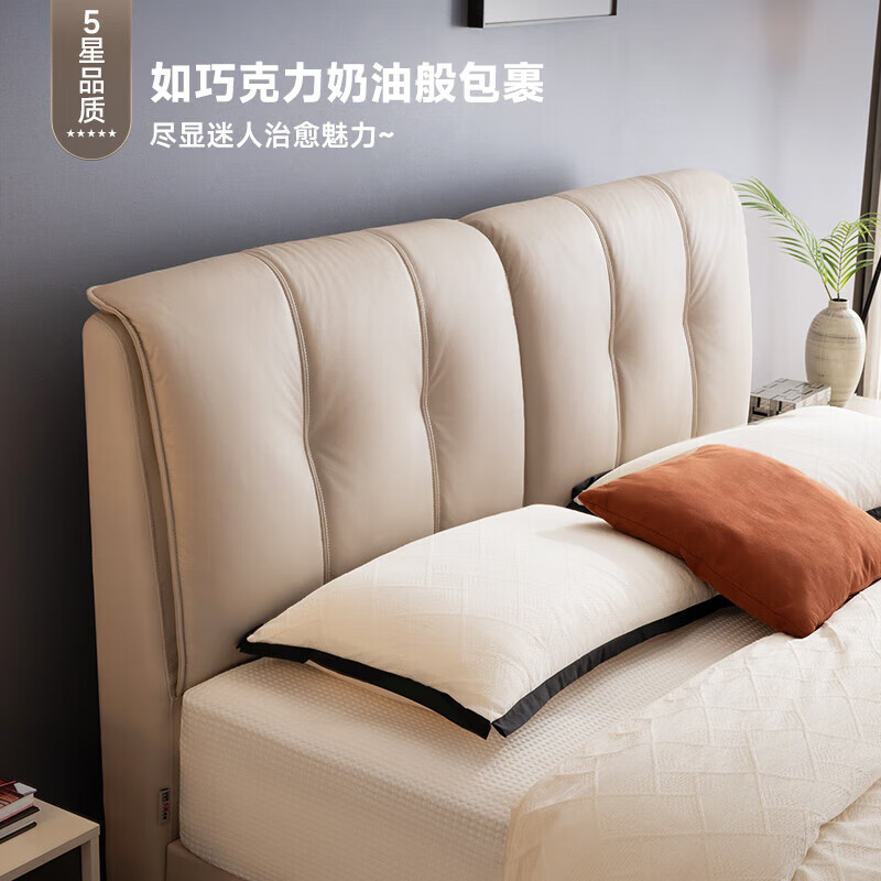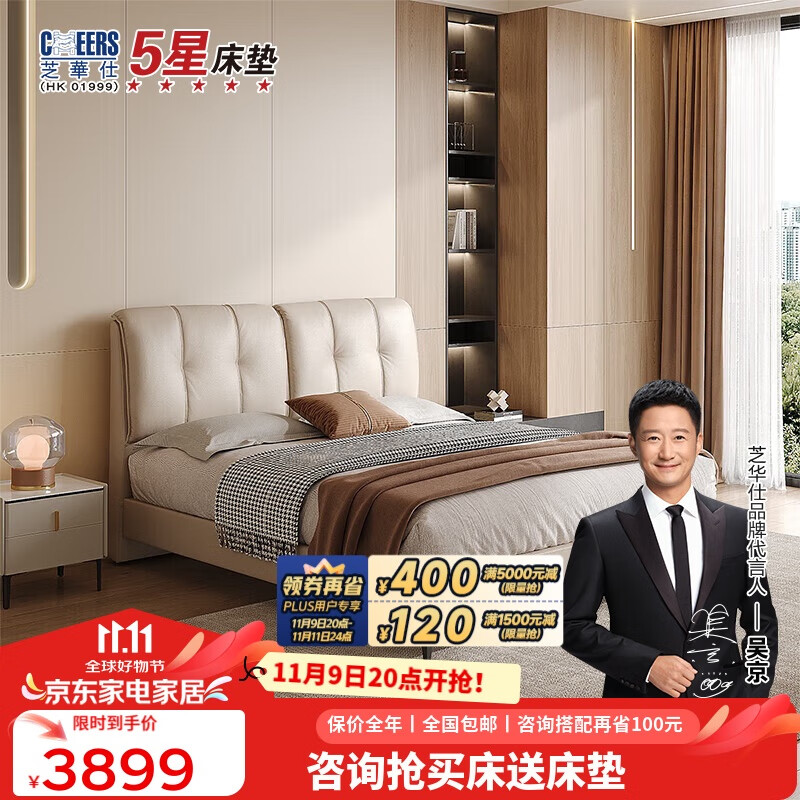 芝华仕(CHEERS)线下同款五星皮床软包卧室奶油风双人婚床芝华士C265高脚1.8M白价格:3899.00元!