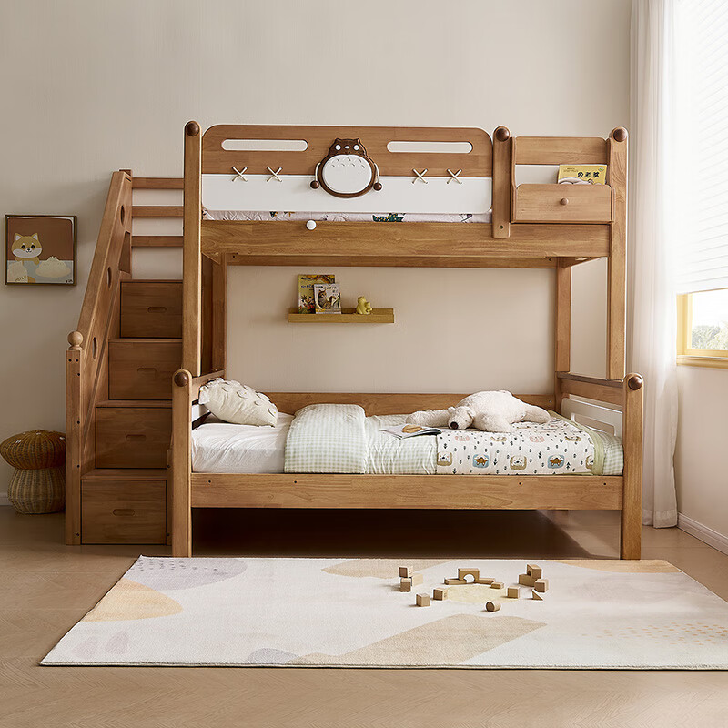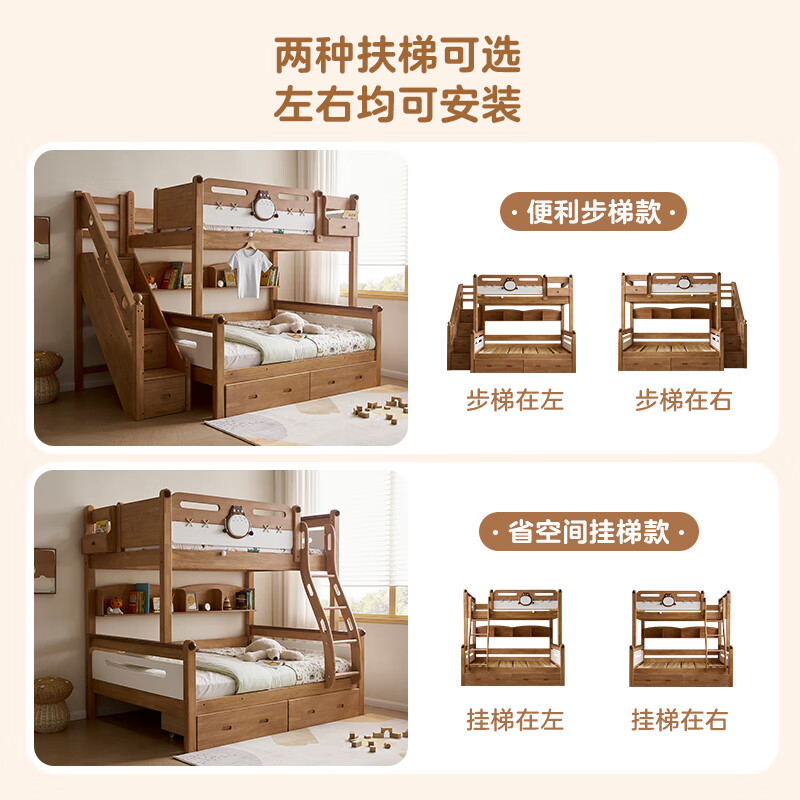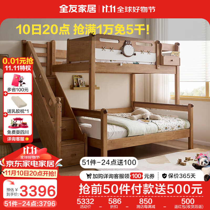 全友家居 实木高低床男孩女孩青少年原木风上下铺床家具1.35米DW7028价格:5332.58元!