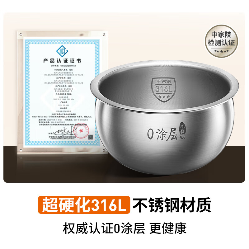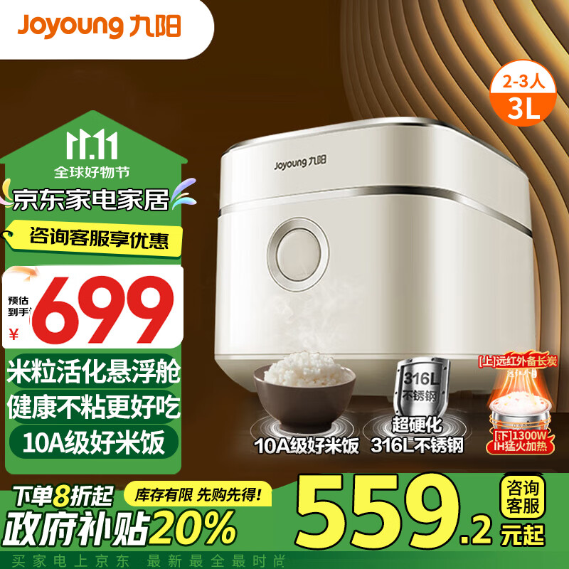 九阳(Joyoung)全新升级3代不粘0涂层3升家用容量2~3人远红外电饭煲饭锅无涂层316L不锈钢内胆IH加热30N1U价格:699.00元!