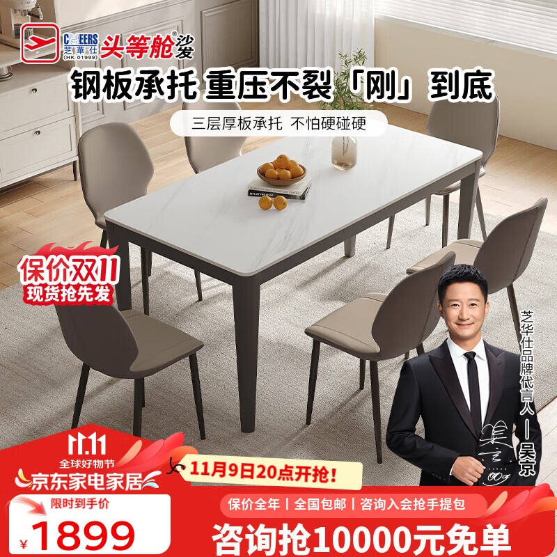 芝华仕(CHEERS)现代简约岩板餐桌椅家用长方形家用客厅家具芝华士CT152 4&CY27价格:1899.00元!