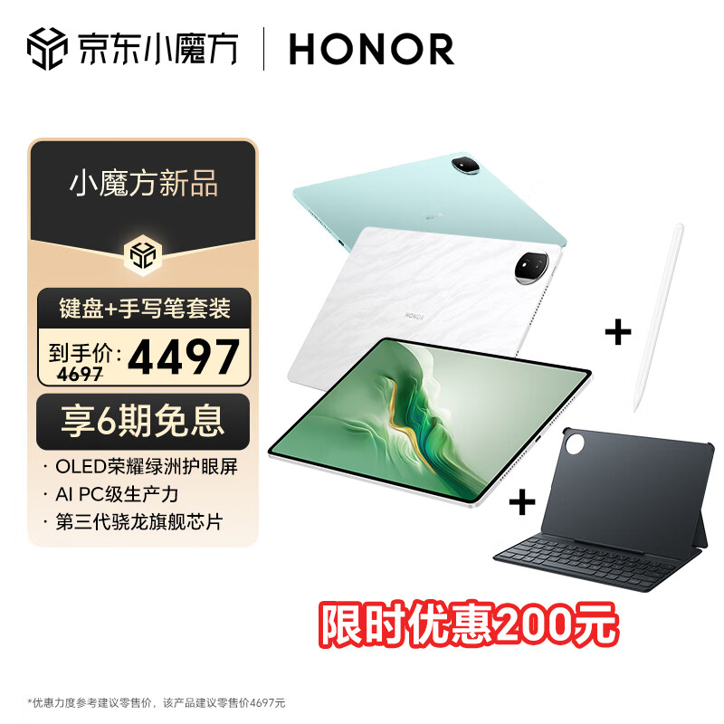 荣耀平板MagicPad2 12.3英寸 平板电脑(手写笔+键盘套装)16+512GB OLED荣耀视力舒缓绿洲护眼屏 星空黑价格:4447.00元!