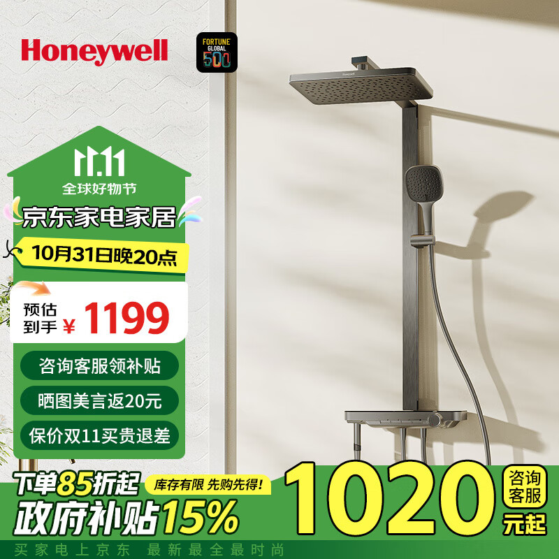 霍尼韦尔(Honeywell)500强卫浴枪灰淋浴花洒套装钢琴键卫生间浴室花洒增压家用价格:1199.00元!